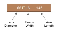On the inside of one of the arms of your frames, you will usually find three printed measurements – the first two separated by a rectangle and then a 3 digit number, like this: